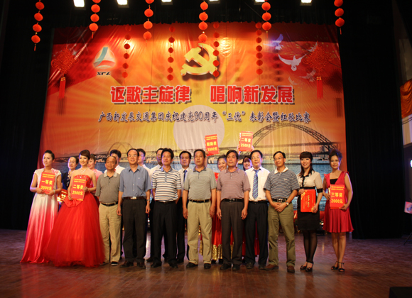 廣西新發(fā)展交通集團(tuán)公司機(jī)關(guān)一曲激情飛揚(yáng)的合唱《我的祖國(guó)》拉開了紅歌比賽序幕。當(dāng)晚,來(lái)自集團(tuán)公司機(jī)關(guān)及其各直屬單位的共10個(gè)參賽隊(duì)用嘹亮的歌聲激情演唱,一曲曲紅歌振奮人心、鼓舞士氣、催人奮進(jìn)。經(jīng)過(guò)激烈角逐,廣西路橋建設(shè)有限公司以一曲四聲部深情合唱《太陽(yáng)最紅,毛主席最親》勇奪紅歌比賽一等獎(jiǎng),廣西公路橋梁工程總公司放歌的《江山》和廣西航務(wù)工程處的大合唱《保衛(wèi)黃河》同獲二等獎(jiǎng),來(lái)自廣西交通科學(xué)研究院的《年輕的朋友來(lái)相會(huì)》、廣西交通物資總公司的《我和我的祖國(guó)》及廣西中路交通建設(shè)總公司的《祖國(guó)不會(huì)忘記我》榮獲三等獎(jiǎng)。