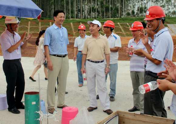 在施工現場,黃華寬書記認真聽取了項目建設情況的匯報,對欽崇高速公路建設總體情況表示滿意。他強調,欽崇高速公路是崇左乃至東盟通往北部灣經濟區的重要通道,各單位、各部門一是要在確保質量和安全前提下,加快欽崇高速公路項目建設步伐,早日完成通車目標任務,促進陸路東盟經濟產業快速發展;二是要在建設好欽崇高速公路項目的同時,科學規劃,合理布局,完善其他各項基礎設施建設;三是要為崇左至靖西高速公路這條西南大通道做好充分的準備工作,力保項目順利開工建設。
