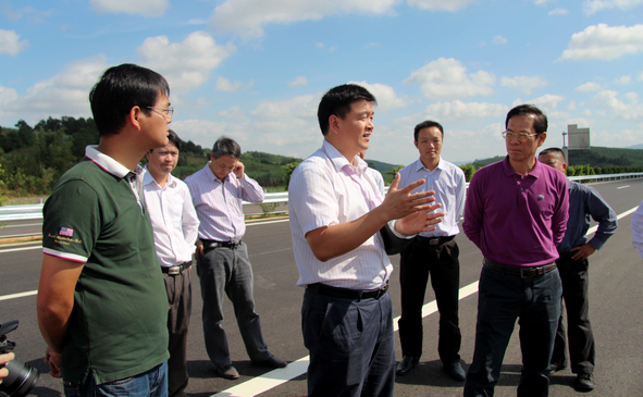 11月22日,梁毅副廳長蒞臨欽崇D標,檢查欽崇高速公路項目后期建設(shè)情況。在施工現(xiàn)場,梁副廳長認真查看了項目各項施工建設(shè)情況,對項目率先完成主線瀝青路面施工表示高度贊賞。梁副廳長強調(diào),欽崇高速公路建設(shè)進入尾期,各參建單位要繼續(xù)群策群力、緊密配合,加大人力物力投入,在質(zhì)量保證、安全保障的基礎(chǔ)前提下盡快完成瀝青路面攤鋪,同時要抓緊完成交安、綠化等附屬工程施工,實現(xiàn)欽崇高速公路年底通車的目標任務(wù)。11月23日,梁毅副廳長來到玉鐵C標,詳細詢問了項目的施工生產(chǎn)情況,要求各參建單位加強配合,通力合作,在保證質(zhì)量和安全的前提下全力以赴加快玉鐵高速公路的建設(shè),盡快實現(xiàn)玉鐵高速公路的通車目標,為廣西經(jīng)濟建設(shè)發(fā)展做出積極貢獻。