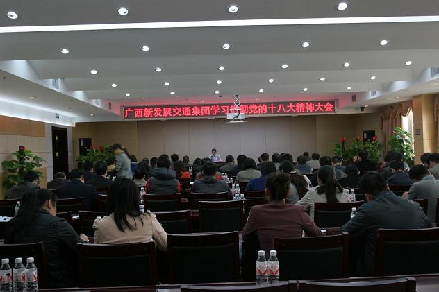 為深入學(xué)習(xí)貫徹落實黨的十八大會議精神,在組織廣大黨員干部職工參加支部集中學(xué)習(xí)、科室集中學(xué)習(xí)、業(yè)余自學(xué)的基礎(chǔ)上,12月6日上午,廣西新發(fā)展交通集團黨委在南寧召開了集中學(xué)習(xí)貫徹黨的十八大精神專題輔導(dǎo)大會,集中聽取了中國社會科學(xué)院黨組成員、副院長兼當(dāng)代中國研究所所長、黨組書記李捷同志關(guān)于《深入學(xué)習(xí)貫徹十八大精神》的視頻專題輔導(dǎo)講座。集團公司領(lǐng)導(dǎo)班子成員、集團公司機關(guān)全體人員,直屬各單位領(lǐng)導(dǎo)班子成員、黨委辦公室負(fù)責(zé)人,廣西公路橋梁工程總公司各分(子)公司黨政一把手共80余人參加了會議。講座從黨的十八大主題、科學(xué)發(fā)展觀、中國特色社會主義道路、全面建成小康社會的新論斷及關(guān)于黨的建設(shè)要求的總體布局等五個方面進(jìn)行了深入解答,讓廣大黨員干部職工受益匪淺。