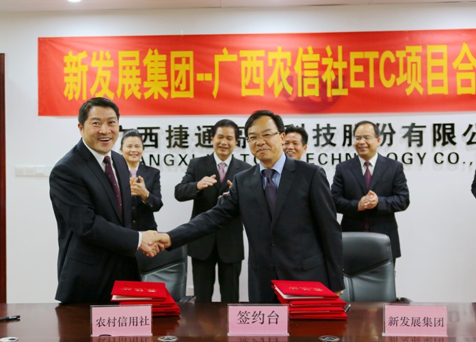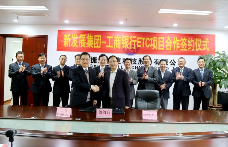 2016年3月2日、3月4日,集團公司分別與中國工商銀行廣西區(qū)分行、廣西農(nóng)村信用社簽訂ETC項目合作協(xié)議,標(biāo)志著新發(fā)展集團多措并舉全面全力推廣拓展ETC項目又邁出了堅實的步伐。