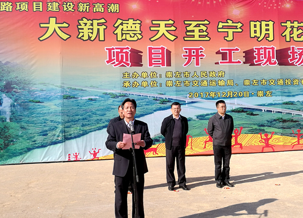 12月20日,崇左市大新德天至寧明花山公路舉行開工儀式,集團公司黨委書記、董事長朱堅和,集團公司黨委副書記、副董事長、總經(jīng)理唐咸秋,路橋工程集團及設計院有限公司相關(guān)負責人參加了開工儀式。