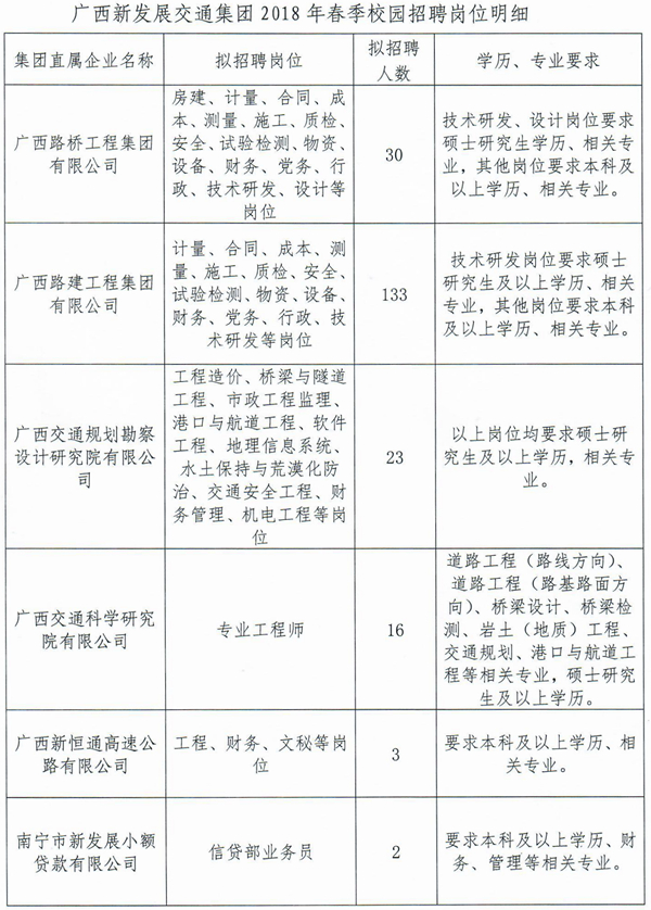 廣西新發(fā)展交通集團(tuán)2018年春季校園招聘宣講會時間及地點(diǎn)安排: