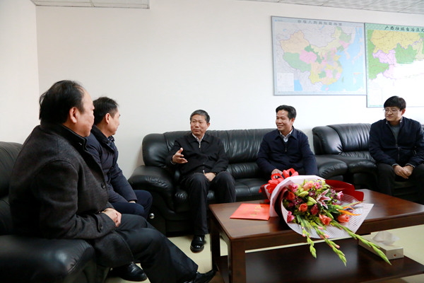 2月5日,自治區人民政府副主席費志榮深入集團公司直屬企業廣西路建集團慰問科技人才馮智。