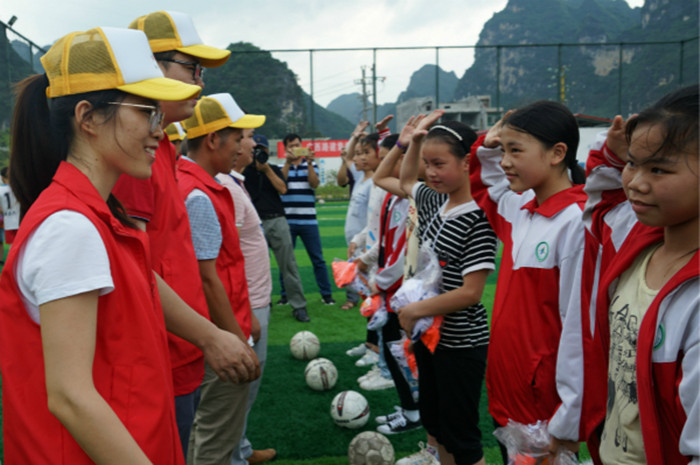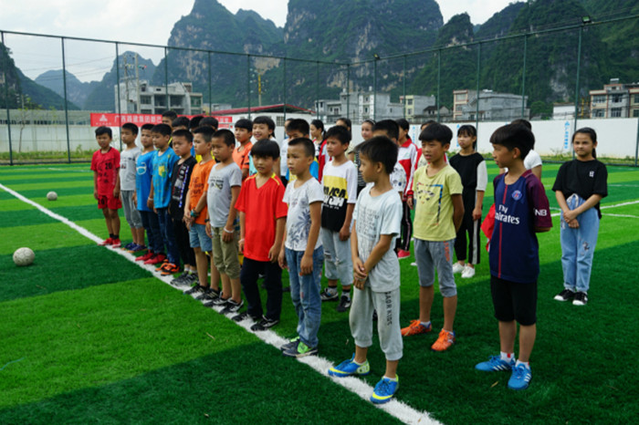 六也鄉(xiāng)中心小學韋校長對青年志愿者們的幫助表示衷心的感謝,他表示:志愿者們的愛心不僅解決了孩子們的運動場所問題,更是在孩子們的心中種下了希望的種子,圓了孩子們的足球夢。六年級的小浩作為球隊隊長為都巴高速志愿者代表送上錦旗,并表示一定不會辜負大家的愛心與期望,勤奮鍛煉、努力向上,做一個對社會有用的人。