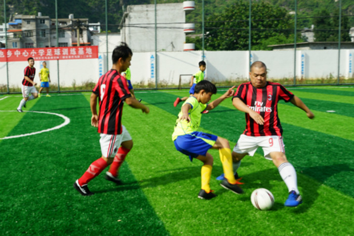 圖四:都巴高速足球隊與六也鄉(xiāng)中心小學足球隊進行友誼賽