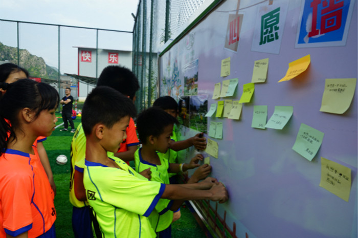 在活動現(xiàn)場,志愿者們還為孩子們設置了“心愿墻”,孩子們在老師的指引下寫出了埋藏在心里已久的心愿—“我想要一件皇馬隊球衣”、“我想要一本日記本”……一個個質樸的心愿都將在志愿者的幫助下得以實現(xiàn)。