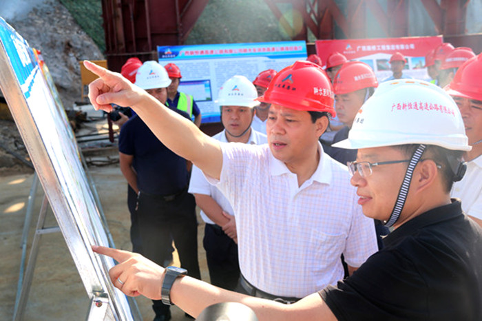9月21日上午,廣西壯族自治區黨委常委、政法委書記黃世勇到融河高速調研,河池市市長唐云舒,政法委書記黃光華參加調研。