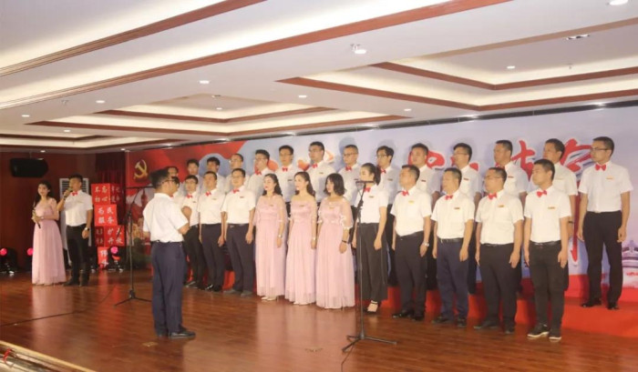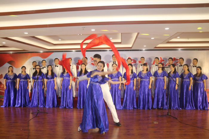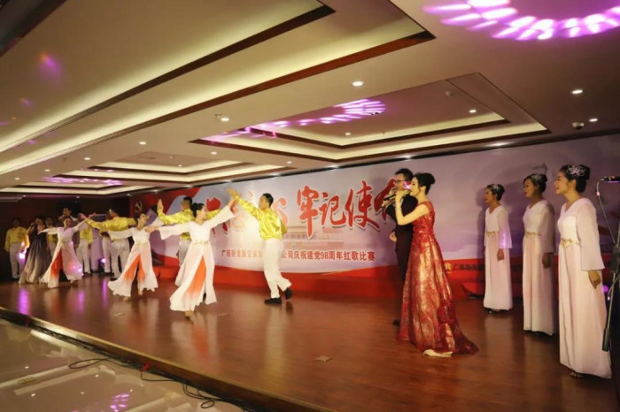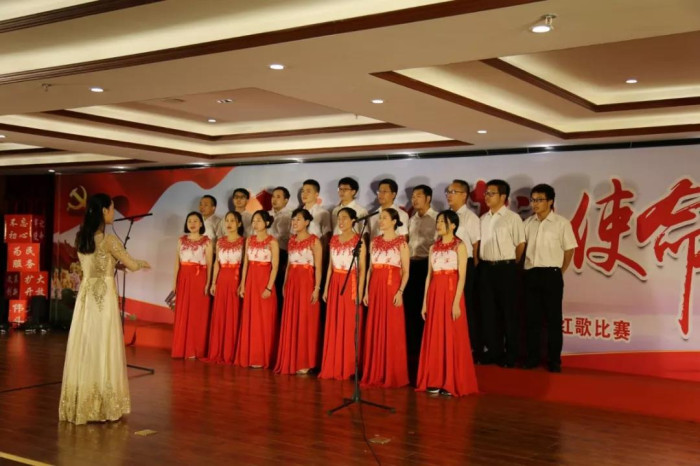 來自新發展集團本部,各直屬單位、指揮部的11支代表隊歡聚一堂,用滿腔熱情唱響紅色旋律,歌頌黨的恩情,獻禮建黨98華誕。其中,新發展集團本部吟唱余音渺渺的《愛國歌》,用現代舞和朗誦的形式表現個人與祖國血脈相連、風雨同當的情愫,最終拔得頭籌;欽北改擴建指揮部、人防設計院緊緊結合“不忘初心、牢記使命”主題教育的根本遵循,分別合唱《不忘初心》《走向復興》兩首曲目,并做到演唱連貫、節奏鮮明、情緒準確,分別獲得二等獎;大浦公司、融河高速指揮部、鐘昭高速指揮部則在確保歌曲的完整度、準確度、協調度的同時,在服裝、隊形、伴奏上別出心裁,最終獲得三等獎;其余隊伍也各具特色,使所選紅歌綻放出燦爛的光彩,展現出新發展集團奮斗拼搏的精神面貌。