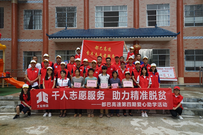 脫貧攻堅,教育為先。為幫助深山里的瑤鄉脫貧,8月27日,都巴高速在集團公司“千人志愿”活動的號召下,開展第四期“助力脫貧•愛心助學”活動,110名青年志愿者為貧困學子捐資慰問品、助學金共27371元,用實實在在的行動為沿線群眾服務解難題,進一步豐富“區市共建”內涵。