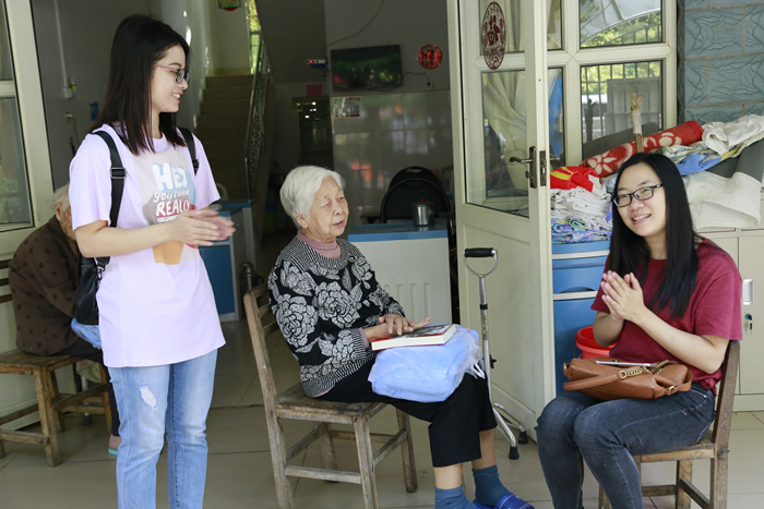 志愿者們圍坐在老人旁邊,詢問他們的生活情況、身體情況,叮囑他們注意保暖、保重身體,傾聽他們的人生故事和叮嚀告誡,并為給他們唱紅歌、讀故事、講新聞,豐富他們的精神生活。老人們對志愿者的到來感到十分高興,和志愿者一起合唱《團結就是力量》、《歌唱祖國》、《沒有共產黨就沒有新中國》等歌曲。護老院處處洋溢著歡樂的氣氛,老人們的臉上洋溢著幸福。
