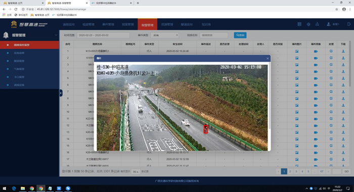 近日,昭平運(yùn)營管理中心智慧高速軟件平臺引入了“人工智能事件檢測報(bào)警系統(tǒng)”。該系統(tǒng)采用了人工智能深度學(xué)習(xí)技術(shù),在鐘昭高速每2公里一個(gè)監(jiān)控?cái)z像機(jī)的硬件基礎(chǔ)上,能夠?qū)崿F(xiàn)鐘昭高速全線事件檢測全面覆蓋,快速發(fā)現(xiàn)路上異常情況并發(fā)出警報(bào)。